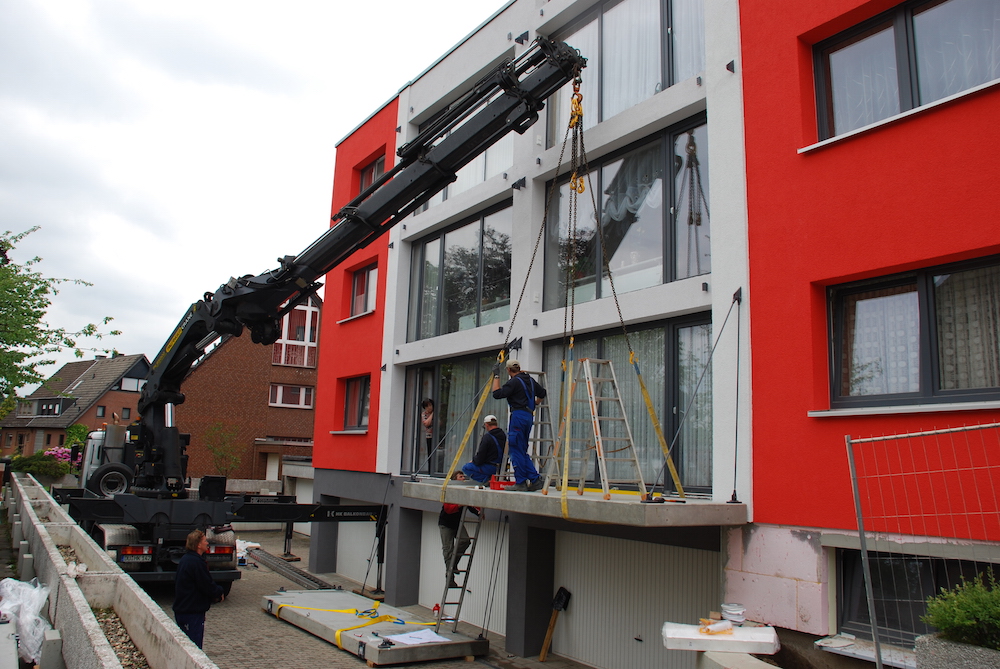 Stahlbetonbalkone mit Stahl- oder Alustützen gestellt oder gehängt