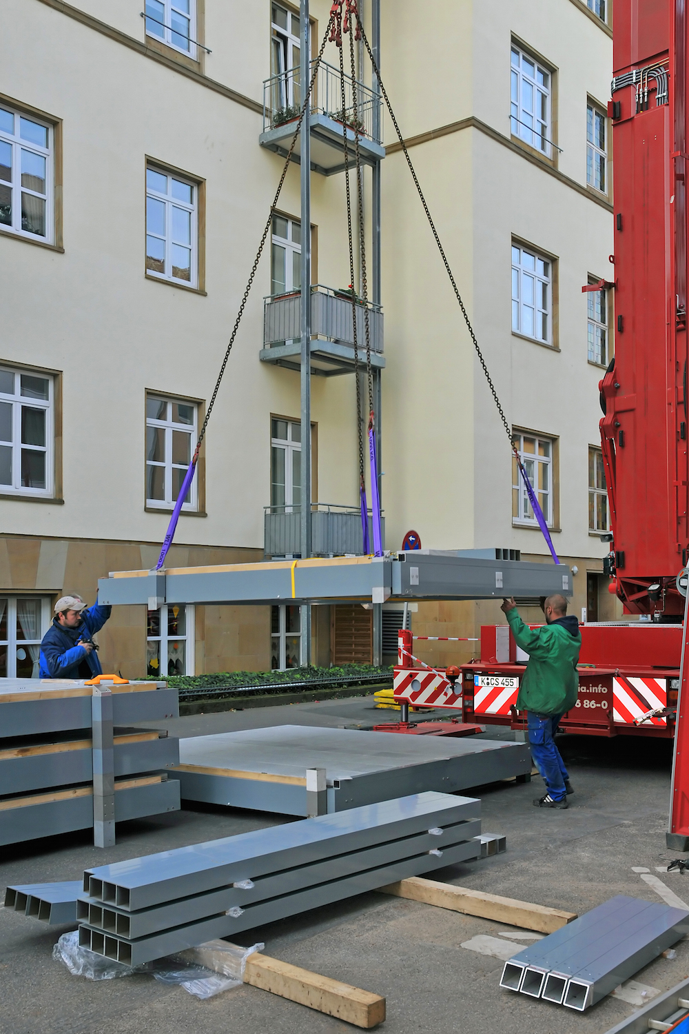 Reibungsloser Bauablauf mit eigenen Montageteams und minimaler Mieterbelästigung ohne Inanspruchnahme des Wohnbereichs.